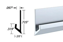 - 1/4-inch Standard Aluminum Nose J Channel: Used for mirror installation, typically with an embedded method, using a deep track at the top and a standard shallow track at the bottom.